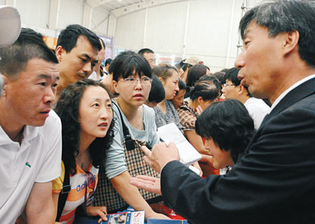 参会的116所学校,括普通高中、职业高中、技校、师范学校等,但人气 旺的是那些省重点高中。湖南阳光电子技术学校咨询区比别的学校大了两三倍,但仍被家长围了个里三层外三层。有的家长一时挤不进去,学校老师只好走出咨询台“上前”服务。